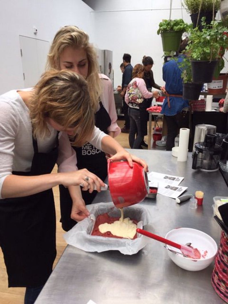 Na een wat stroeve verdeling van ons groepje (het blijft vrouwen onder elkaar natuurlijk...), zijn we begonnen met het recept. We zaten uiteindelijk met twee super gezellige vrouwen! Alles ging in goede harmonie en we hadden het heel leuk met elkaar. Menno liep rond in de studio om iedereen te helpen en om tips te geven. Ik heb er echt heel veel van opgestoken. Het resultaat mocht er dan ook zeker wezen! Onze redheads waren uitgekozen om op de foto te gaan voor Bosch.