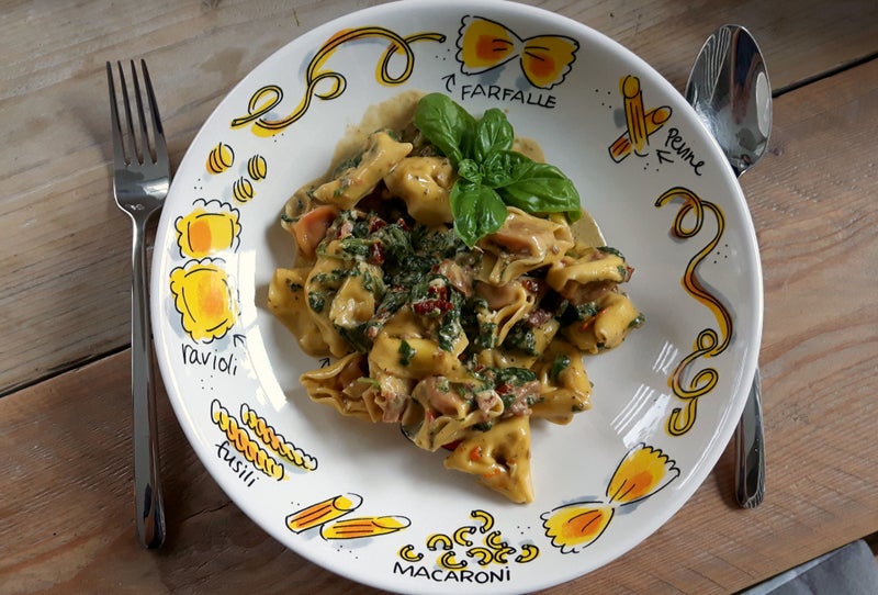 Stipt op 1 staat voor mij deze romige tortellini. Het is het ultieme comfort food en je hebt 'm binnen 10 minuten op tafel staan. Daarbij is het snijwerk ook nog eens minimaal. Klik hier voor het recept.